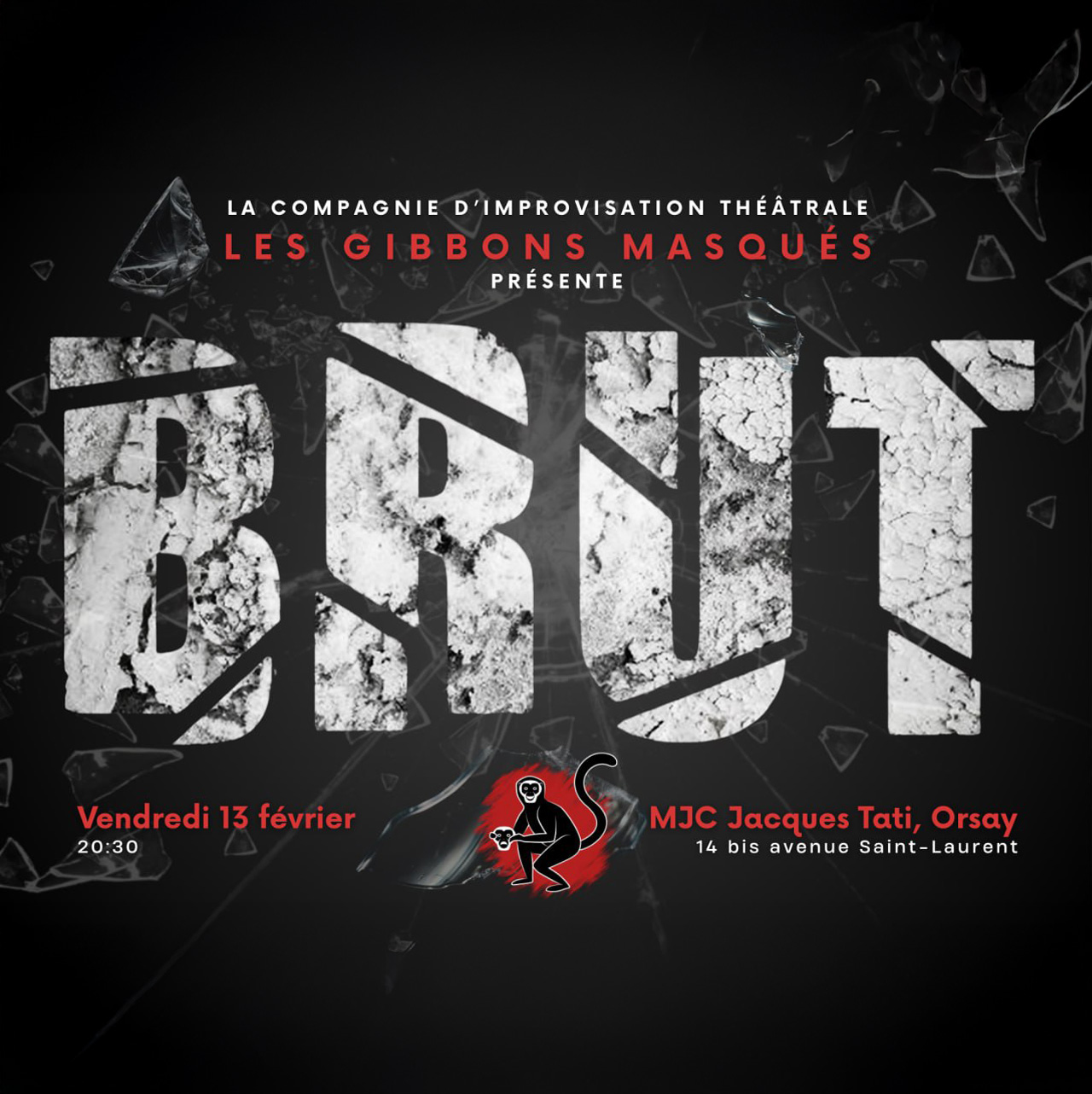 BRUT est un spectacle de freeform, c’est-à-dire un format où les impros se succèdent sans structure fixe, ni règles strictes. Les improvisateur·rice·s créent ensemble des scènes sans contrainte de durée ni de format, favorisant la spontanéité et la créativité collective. Pour situer et colorer leurs histoires, iels s’appuient sur des petits papiers préremplis par le public, où sont écrits des mots (lieu, nom, objet…). Chaque scène se déploie ensuite librement, sans limites de temps, d’espace ni de style de jeu.