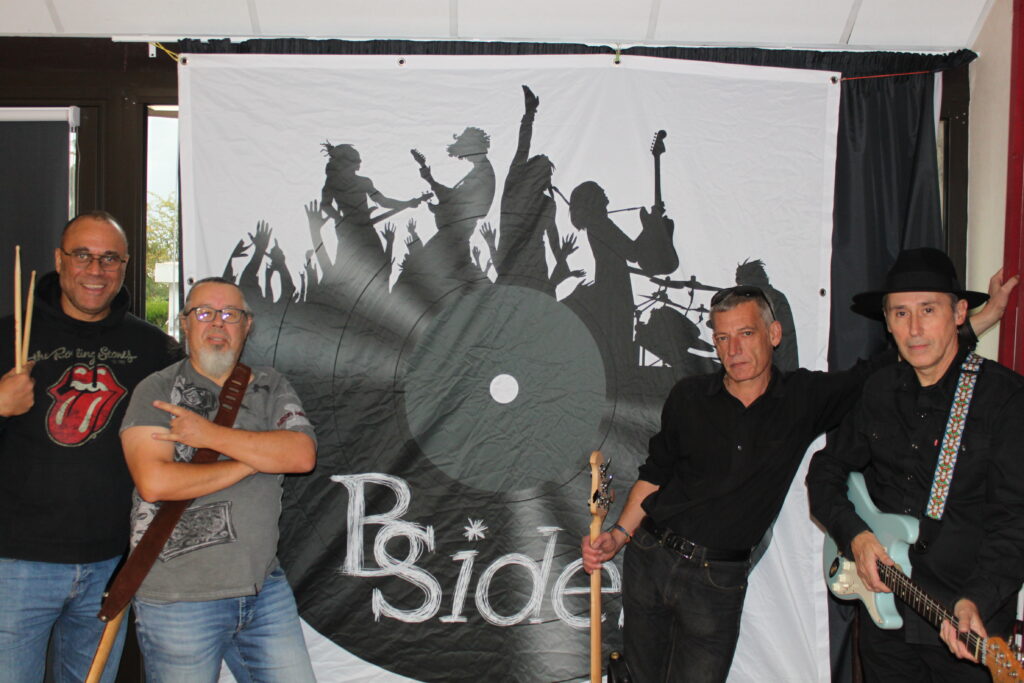 BSides est un groupe de reprise rock créé il y a 1 an composé de quinquas et sexagénaires : 2 guitaristes, 1 bassiste, tous les 3 également au chant et au cœur, ainsi qu’un batteur. Dans notre répertoire on retrouve entre autres des chansons de U2, Billy Idol, Neil Young, AC/DC, David Bowie, The Clash, Jimmy Hendrix, les Rolling stones, … et pas forcément les tubes les plus connus.