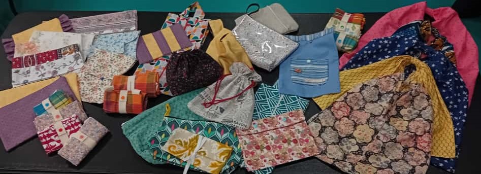 40 pochettes, utiles et jolies, sont nées de nos mains et de notre implication, symbolisant notre soutien à celles qui traversent l’épreuve de ce cancer. 40 pièces uniques : pochette à maquillage, pochette de voyage, tote-bag, trousse, petit sac… 40 reflets de notre admiration pour le courage de ces femmes, chacune unique dans son parcours, dans l’espoir de leur apporter un sourire ou un peu de chaleur humaine.