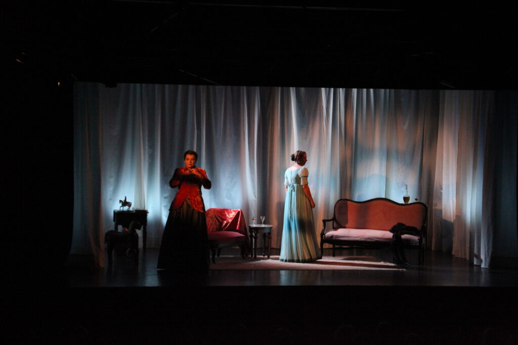 Très belle interprétation de ce « duel de femmes » durant lequel on voit les actrices passer de la force apportée par la répartie qui fait mouche, à l’impact de la répartie parfois très dure. Le texte est bien écrit, et on a la chance d’avoir l’auteure parmi les deux actrices sur scène. Ça donne envie de (re)lire les liaisons dangereuses !